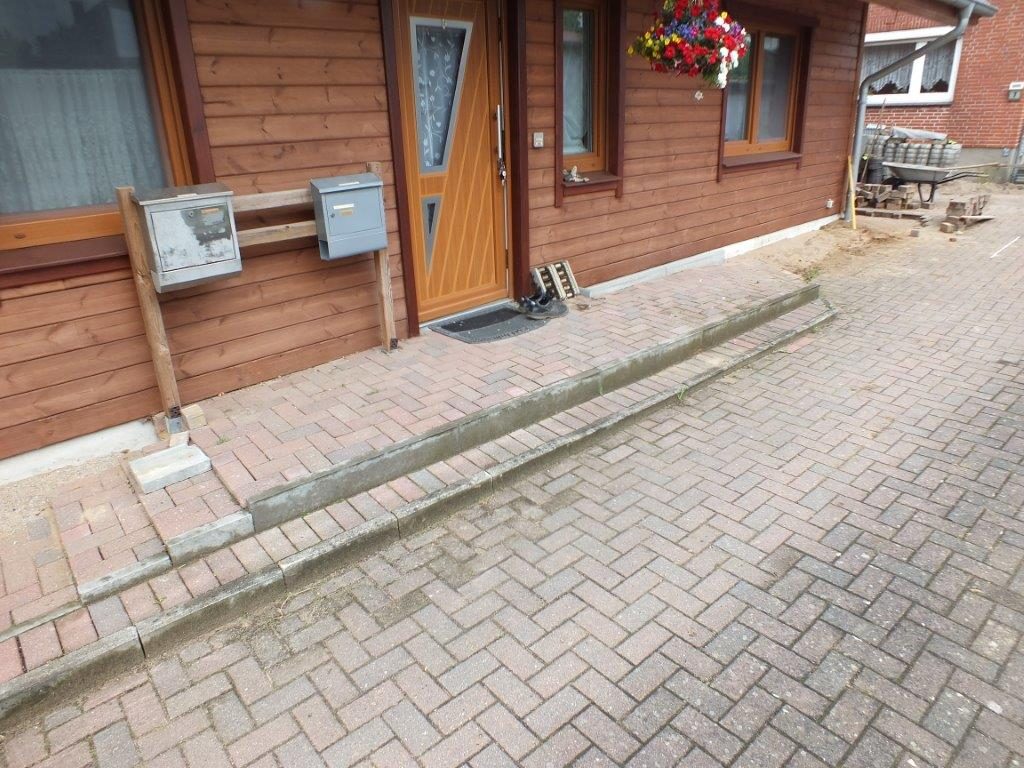 Der neue Aufgang wurde heute gepflastert. Wir sind mit dem Ergebnis sehr zufrieden.