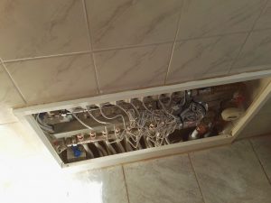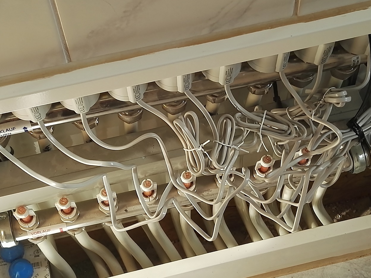Nach der Wechselaktion im Erdgeschoss im Januar, waren jetzt zu Beginn der Heizsaison die Stellantriebe im Obergeschoss an der Reihe. Im Frühjahr gabs einen weiteren Kurzschluß, der sogar den FI-Schutzschalter rausgehauen hatte. Nach gerade mal 5 Jahren ist es sehr ärgerlich, schon hohe Reparaturkosten am Haus zu haben. Zum Glück konnte ich die Stellantriebe günstig über die Firma einkaufen. Die UVP des Herstellers liegt bei 31,50€ /Stück zzgl. Mwst. Zusammen mit dem zerstörten Raumthermostaten wären das mal eben 350€ gewesen.